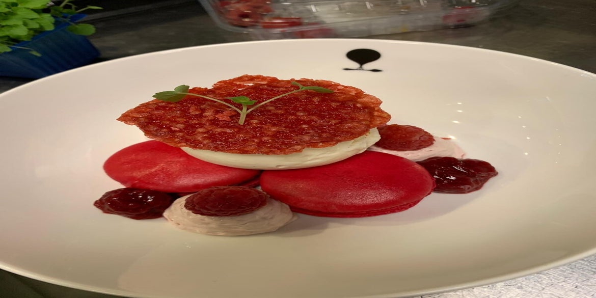 TENDER GAMBA TARTARE COMPLEMENTED BY A RICH BISQUE SAUCE AND PAPRIKA-INFUSED OIL