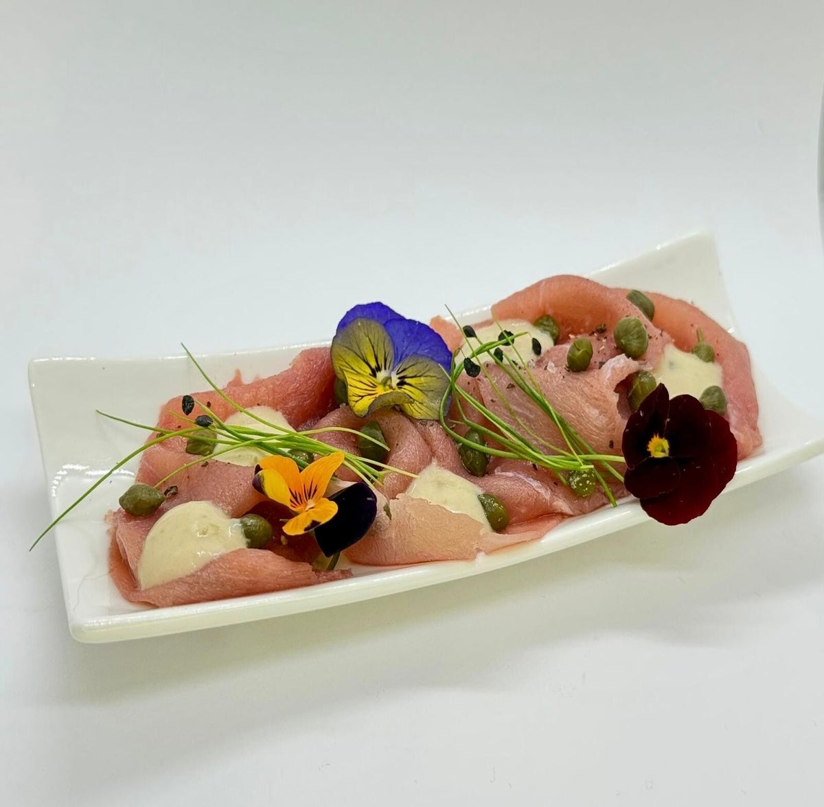 THINLY SLICED VEAL WITH THE CLASSIC TUNA SAUCE, FINISHED WITH TANGY CAPERS